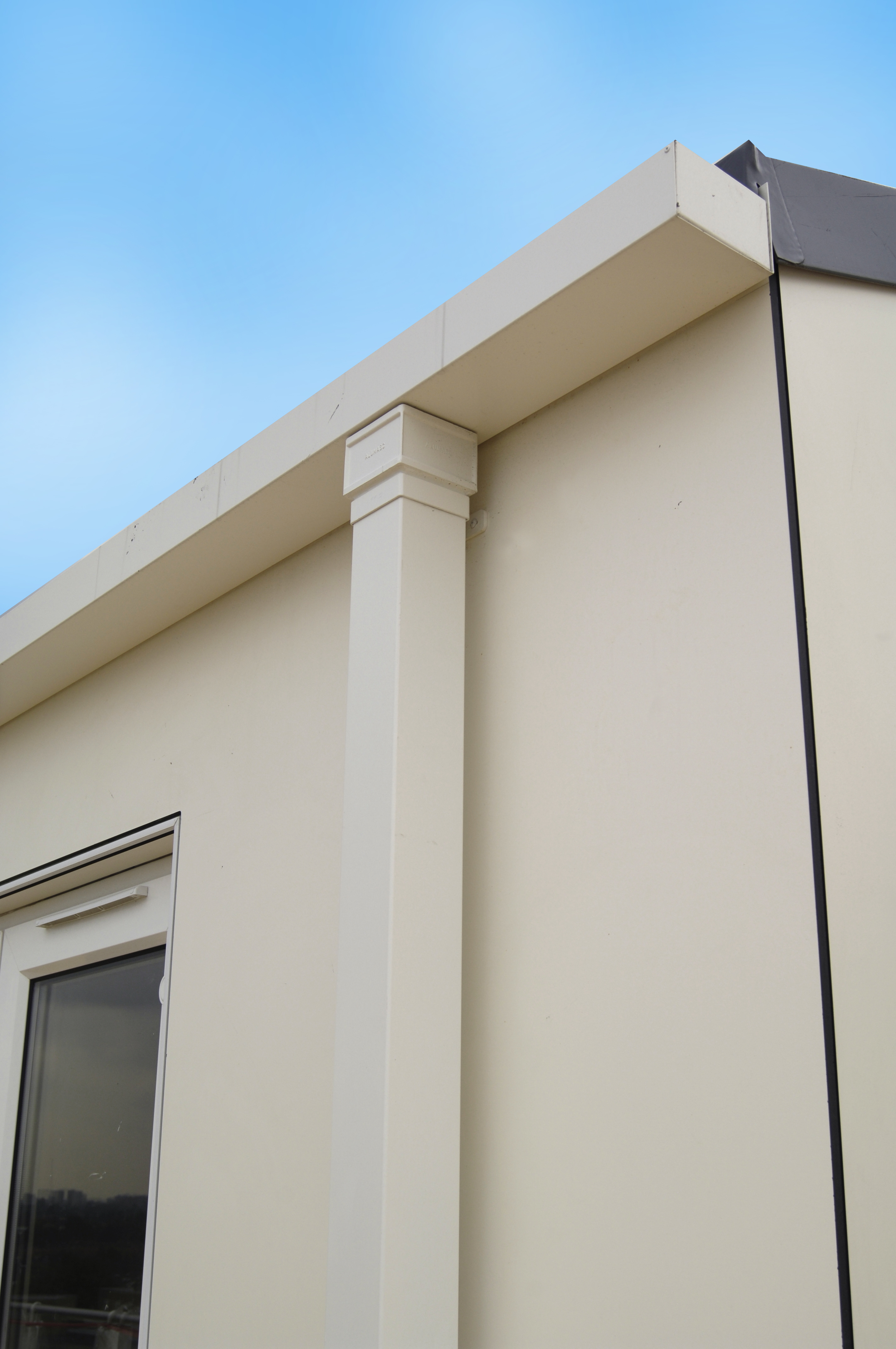 components. Water from the flat roof is drained through highly efficient flush-mounted roof outlets and carried away via an unobtrusive set of rainwater pipes, which subtly enhance and reflect the building’s strong linear presence. Guttering is incorporated within Alumasc’s aluminium fascia/soffit system and Alumasc’s HDPE pipework was specified to complete the installation.