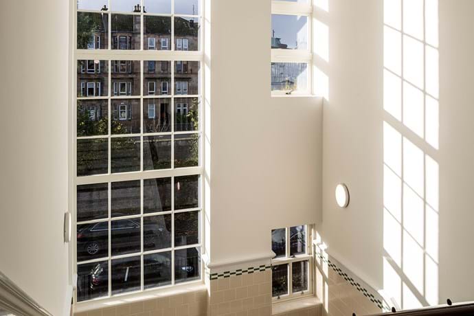 Architects on the project Anderson Bell + Christie worked closely with Historic Environment Scotland to deliver a sympathetic restoration and addition to the existing building, to bring the building back into use and provide much needed housing to the area.