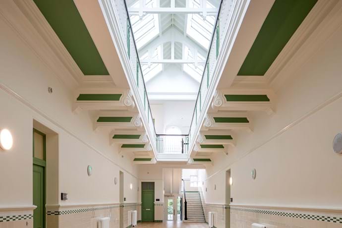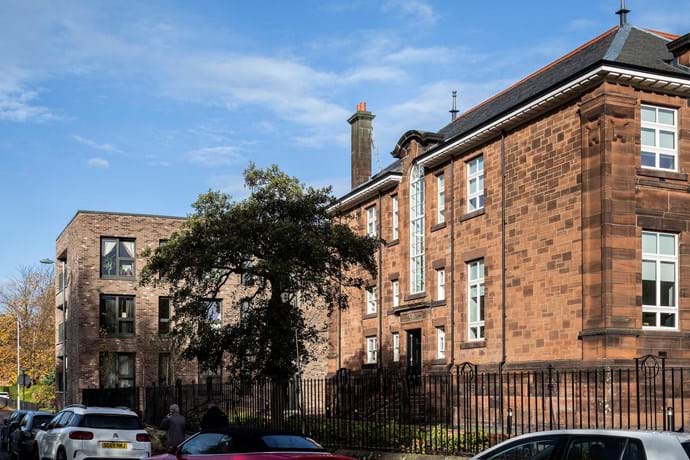 Originally designed by Andrew Balfour and opened in 1908, the school formally closed in 2004 and the site was disused for 15 years before finally finding a new owner in Home Group. The developer purchased the site with the intention of repurposing both the original school building and the janitor’s house, which is Category B Listed, for rented housing, and the all-new construction of an extension and two new blocks. In total, the redevelopment presents a total of 49 homes, in a mix of social and affordable rent.
