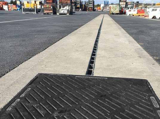 Where continuous, slow turning traffic is a major consideration, Gatic CastSlot, from the Gatic Slotdrain range, is the front runner for ensuring a reliable water management system. The reputation of Gatic Slotdrain as the go to drainage range for infrastructure hubs such as airport runways and major ports, made this the obvious choice for this project.